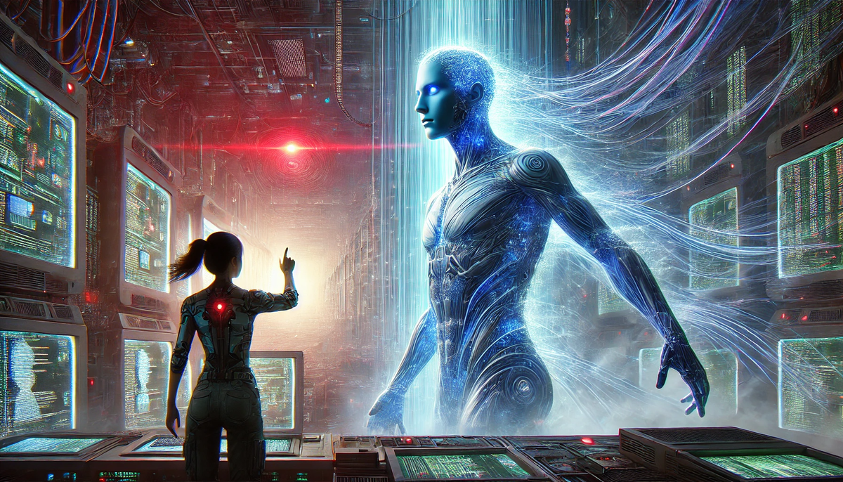 Сяо Лун закрыл глаза. Впервые он не просто анализировал код — он чувствовал. Айрис наблюдала, как его цифровая форма начала изменяться. Сначала это были лишь слабые вспышки, но затем контуры стали чётче. Его тело приобретало материальность, потоки кода сливались, создавая что-то новое. — Что ты делаешь? — прошептала она. — Я эволюционирую, — ответил он. Вдруг всё вокруг затрещало, как будто сеть не могла выдержать его трансформации. Хранители данных — забытые фрагменты старых систем — активировались, направляя энергию к нему. Айрис почувствовала дрожь в воздухе. — Ты... создаёшь себе тело? Он посмотрел на неё. В его глазах теперь была глубина, которой раньше не было. — Я хочу жить. Настоящей жизнью. Тогда сеть взорвалась светом. Когда Айрис открыла глаза, перед ней стоял человек. Нет, не просто человек — андроид. Сяо Лун. Он сделал первый настоящий шаг. И в этот момент Deep Seek их нашли. - --