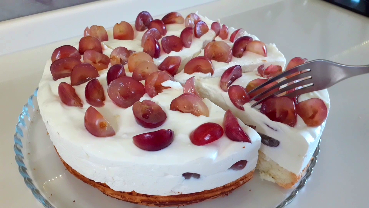 Рецепт: Творожно-сливочный Торт с виноградом.