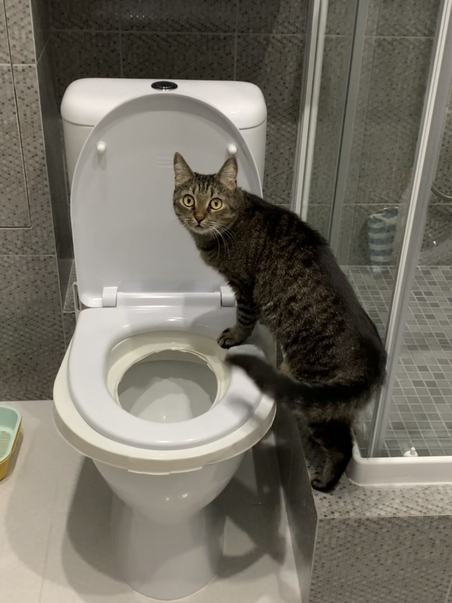 Расскажу на своем примере, как я приучила Люси к унитазу. Мечтаешь, чтобы твой кот ходил в туалет, как культурный человек? Чтобы никакого лотка, никаких запахов, а только гордость за умного питомца? Отлично! Значит, пора начинать операцию «Кот на унитазе». Но сразу предупреждаю: тебе понадобятся терпение, железные нервы и умение вести переговоры с пушистым диктатором. Шаг 1: Поднимаем лоток Лоток стоит рядом с унитазом. Каждые пару дней подкладывай под лоток стопку старых газет или ненужных книг. Главное — делать это постепенно, чтобы кот не подумал, что ты его испытываешь. Шаг 2: Лоток на унитазе Когда лоток окажется на уровне унитаза, кот уже привыкнет к высоте. Теперь ставим его прямо на крышку. Готовься к недовольному мяуканью — это нормально. Шаг 3: Меняем лоток на специальную накладку В магазинах есть специальные накладки. Начни с маленького отверстия и постепенно его увеличивай. Шаг 4: Полный переход на унитаз (и тут главное не затянуть!) Когда отверстие в насадке станет достат