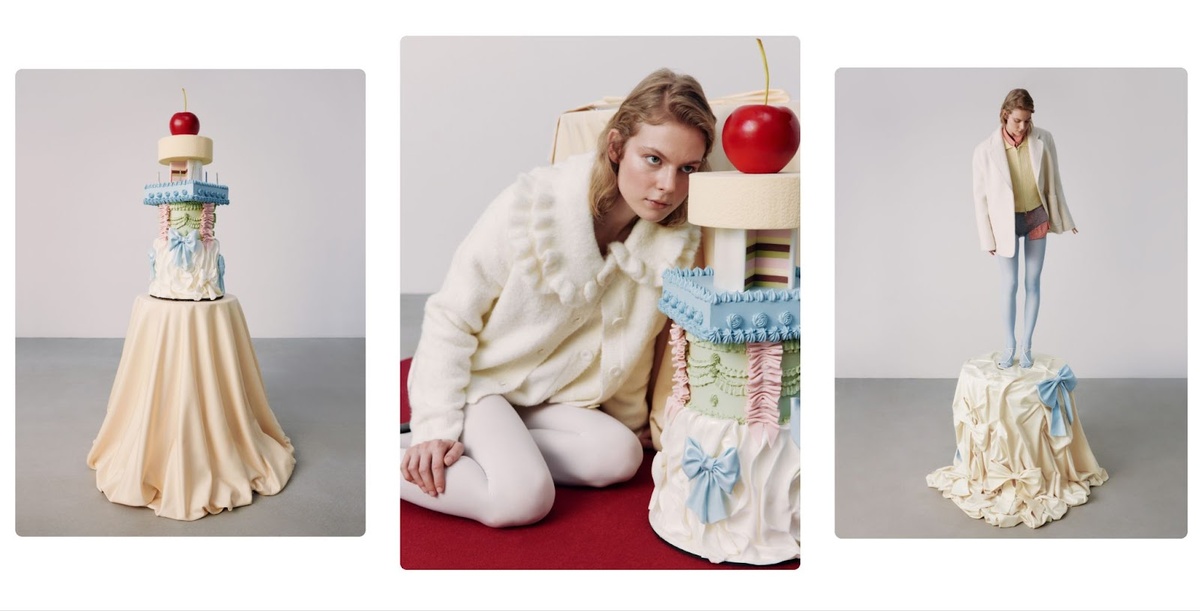 Формы изделий в юбилейной коллекции вдохновлены формой, фактурами и цветами торта. Многоярусность десерта подтолкнула нас к многослойности образов. Воздушная вязь крема, завитки рюш, сливочные оттенки стали лейтмотивом коллекции. Вишня, которая украшает верхушку торта и разбавляет его сладость, стала насыщенным алым цветом и добавила ироничности.