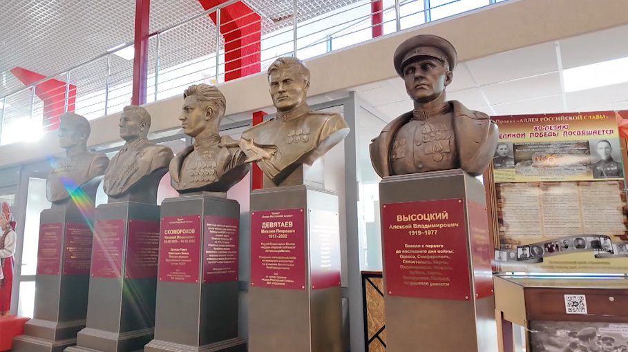 История больших побед в миниатюре. В Нягани начала работу передвижная выставка «Аллея российской Славы». Бюсты полководцев, фотографии, документы о мужестве и отваге — всего более пятисот экспонатов. Великая Отечественная война глазами одного из ее участников — Алексея Высоцкого. Это позже он будет наставником своего талантливого племянника Владимира, а в 40-е годы прошлого столетия — храбрый артиллерист, прошедший всю войну, встретивший на фронте любовь всей своей жизни — Шурочку, человек, который через слово фиксировал военное лихолетье. — Алексей Высоцкий во время войны писал различные очерки, статьи в газету и увековечил память о своих фронтовиках и других участниках войны, которые совершали геройские поступки. Центральная экспозиция — 320 бюстов. И за каждым история мужества, отваги, храбрости. К примеру, как не рассказать о подвиге Михаила Петровича Девятаева, который не просто бежал из плена, но помог это сделать еще девяти узникам на острове Узедом, угнав при этом немецкий само