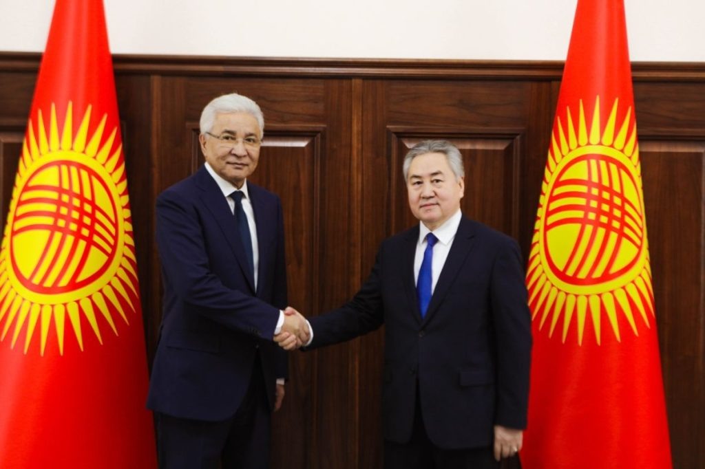 Бишкекте Кыргызстандын тышкы иштер министри Жээнбек Кулубаев менен ЖККУнун башкы катчысы Имангали Тасмагамбетов жолугушуп, 2024-жылдагы ишмердүүлүк жыйынтыгын чыгарышты жана 2025-жылы Кыргызстандын төрагалыгы учурундагы артыкчылыктарды талкуулашты. 🇰🇬 Бишкекте Кыргыз Республикасынын тышкы иштер министри Жээнбек Кулубаев менен Жамааттык коопсуздук келишими уюмунун башкы катчысы Имангали Тасмагамбетовдун жолугушуусу болуп өттү. 📊 2024-жылдагы ЖККУнун ишмердүүлүгүнүн жыйынтыктары талкууланды. 🤝 Кыргыз Республикасынын 2025-жылдагы ЖККУга төрагалык кылуу мезгилиндеги артыкчылыктарын ишке ашыруу боюнча биргелешкен кадамдар каралды. 🌟 Жолугушуу салттуу достук атмосферасында өттү.