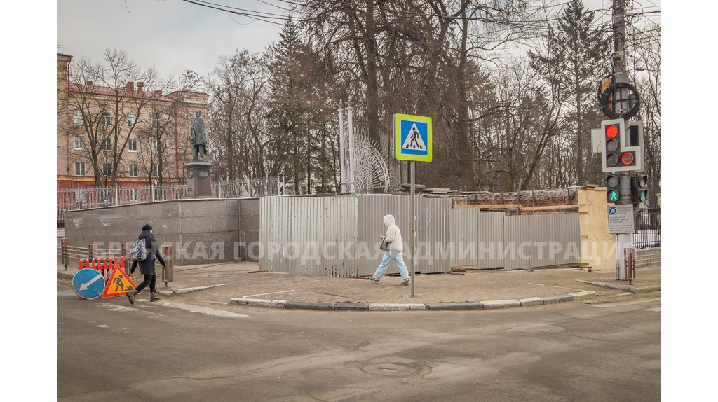 В центре Брянска начался ремонт гранитной стены на входе в сквер Тютчева