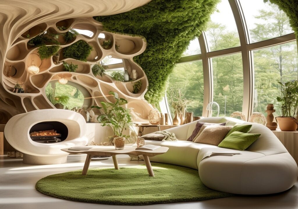 - Использование экологически чистых материалов. Это означает отказ от химически опасных веществ и применение натуральных, переработанных или возобновляемых материалов, таких как дерево, камень, бамбук, натуральный текстиль.