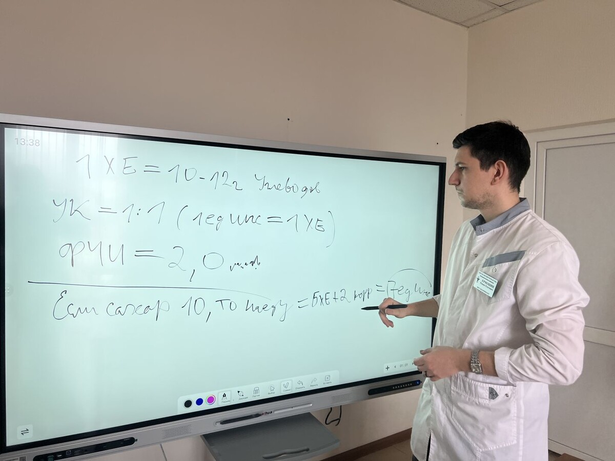 В Ессентукской городской клинической больнице появилось новое оборудование. Для «Школы диабета» была приобретена интерактивная доска. Ее закупили на средства краевого бюджета в рамках регионального проекта «Борьба с сахарным диабетом» нацпроекта «Продолжительная и активная жизнь». «Занятия в Школе диабета — действенный способ помочь пациентам в профилактике и лечении заболевания. Мультимедийная доска позволит врачам задействовать более широкий диапазон визуальных средств при подаче материала, сделать его более понятным для пациентов. Это и экономия времени на подготовку к уроку, и возможность делать правки и пометки в режиме реального времени прямо во время занятий», — пояснил врач-эндокринолог Ессентукской горбольницы Роман Ермошин. По данным регионального Минздрава, на территории Ставрополья действуют 26 подобных учреждений в городских и районных больницах. В 2024 году обучение в «Школах диабета» прошли около 14 тысяч пациентов. «Наш принцип — чем лучше пациент будет информирован, те