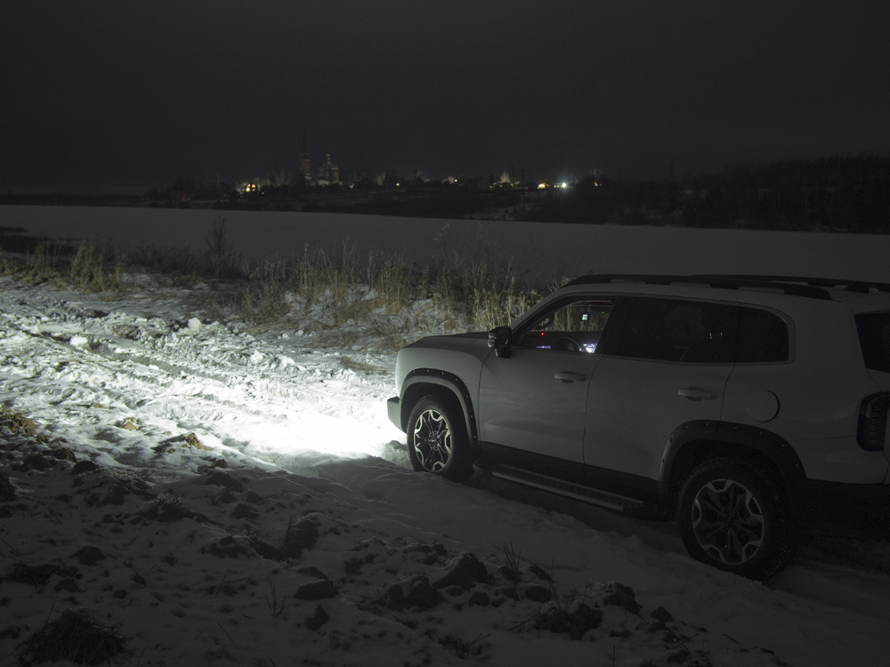 В среду 12 февраля было 100 %-ное полнолуние. Его я ждал и рассчитывал при подходящей погоде вечером выбраться из города. Следил за погодой, с утра было пасмурно, а к полудню облака неожиданно рассеялись, и вышло солнце. Такая погода держалась до самого вечера. Когда выходил с работы, видел, как взошла луна. Решил использовать этот шанс. Ближе к семи вечера, когда выезжал из города, на небе ярко сияла Венера, так сказать, путеводная звезда. Но когда был на полпути к объекту, который выбрал для посещения в этот раз, к моей досаде небо быстро заволокло облаками. Был на распутье, решал – возвращаться домой или все-таки доехать до места назначения. Как истинный путешественник, выбрал второй вариант. Хотя понимал, что в отсутствии луны фотографии будут не такими выразительными по сравнению с теми, какие удалось сделать несколькими днями раньше при яркой луне. Теперь стоит рассказать, куда я направился. Решил доехать до села Шухомош в Фурмановском районе. А снимать собрался со стороны реки Ш