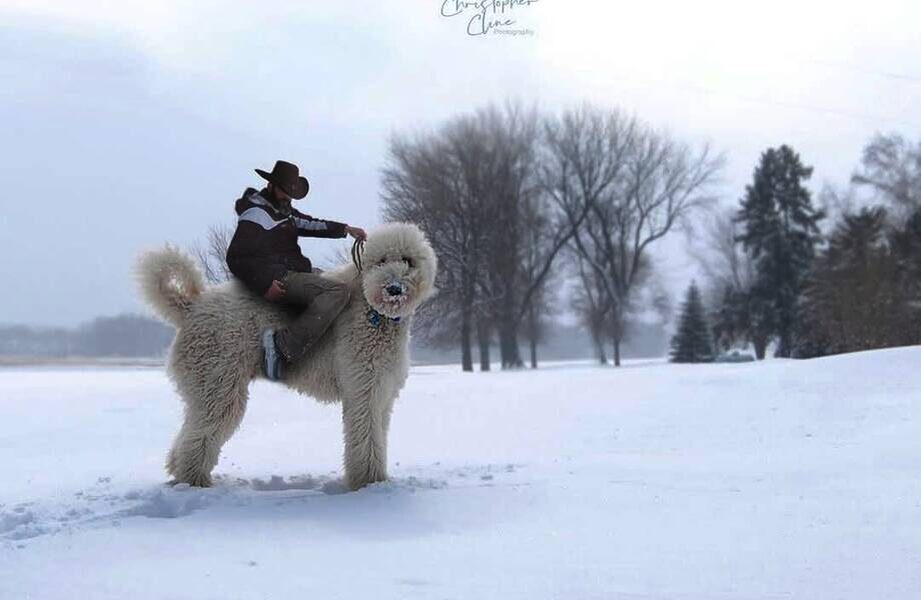 С помощью Photoshop Клайн превратил своего маленького друга в гигантского пса
