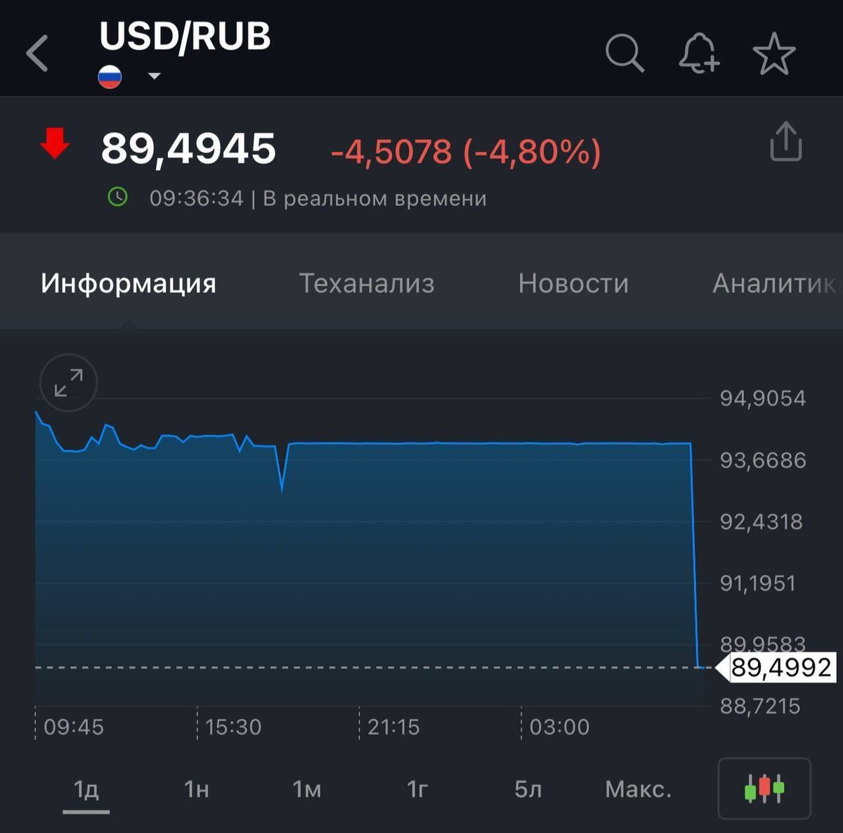 Хорошо поговорили вчера президенты! После этого события курс доллара начал стремительно падать, и дошёл до 89 рублей на рынке Форекс (международный финансовый рынок). Ну просто рекорд года! Фото: ТГ-канал «Топор. Экономика» Но это ещё не все сюрпризы! На фоне оптимизма после телефонных переговоров Путина с Трампом резко взлетел индекс Мосбиржи. Такого не было с лета 2024 года. Фото: ТГ-канал «Топор. Экономика» А российский рынок акций в течение часа после объявления о состоявшемся разговоре президентов двух стран взлетел по полной программе. Российские компании за час подорожали на $2,2 млрд! Самый стремительный рост показали акции Газпрома. Фото: ТГ-канал «Топор. Экономика» Наиболее ликвидные акции продолжают расти. Специалисты сошлись на мнении: ожидание мирных переговоров по Украине толкают рынок акций вверх. Это полезно для экономической ситуации в стране в целом. Фото: ТГ-канал «Mash» Фото: ТГ-канал «Mash» Вот уже лет 6 нам и нашей экономике предвещают крах, а мы ничего, держимся,