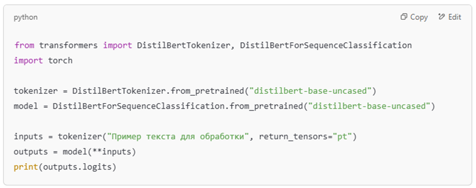 - Distillation (дистилляция) – Перенос знаний из большой модели в меньшую (например, TinyBERT).