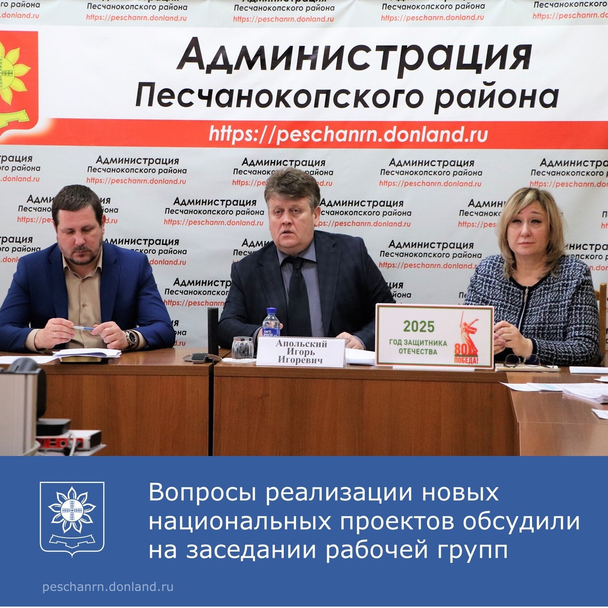 Сегодня, 13 февраля, глава администрации Песчанокопского района Игорь Апольский провел рабочее совещание по вопросам реализации новых национальных проектов. Заместители главы, каждый по своему направлению, представили национальные проекты, которые будут реализовываться с 2025 по 2030 год. Новые национальные проекты дополняют и усиливают действовавшие ранее. - Реализация новых национальных проектов станет настоящим шагом вперед для нашей страны. Мы должны работать вместе — власти, общественность и бизнес— чтобы сделать эти проекты успешными и ощутимыми для каждого гражданина. – подвел итог совещания Игорь Апольский Напоминаем, что с 1 января 2025 года стартовали 19 новых национальных проектов, которые касаются практически всех сфер - от экономики до экологии. Выполнение намеченных планов должно улучшить качество жизни россиян, вывести на новый уровень многие отрасли. Двадцатый национальный проект, направленный на развитие биоэкономики, должен быть готов к запуску к концу марта. #Песчан