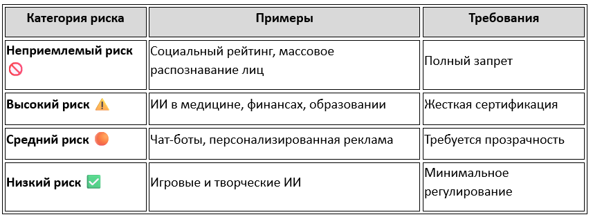 Этот закон классифицирует ИИ-системы по уровню риска:
