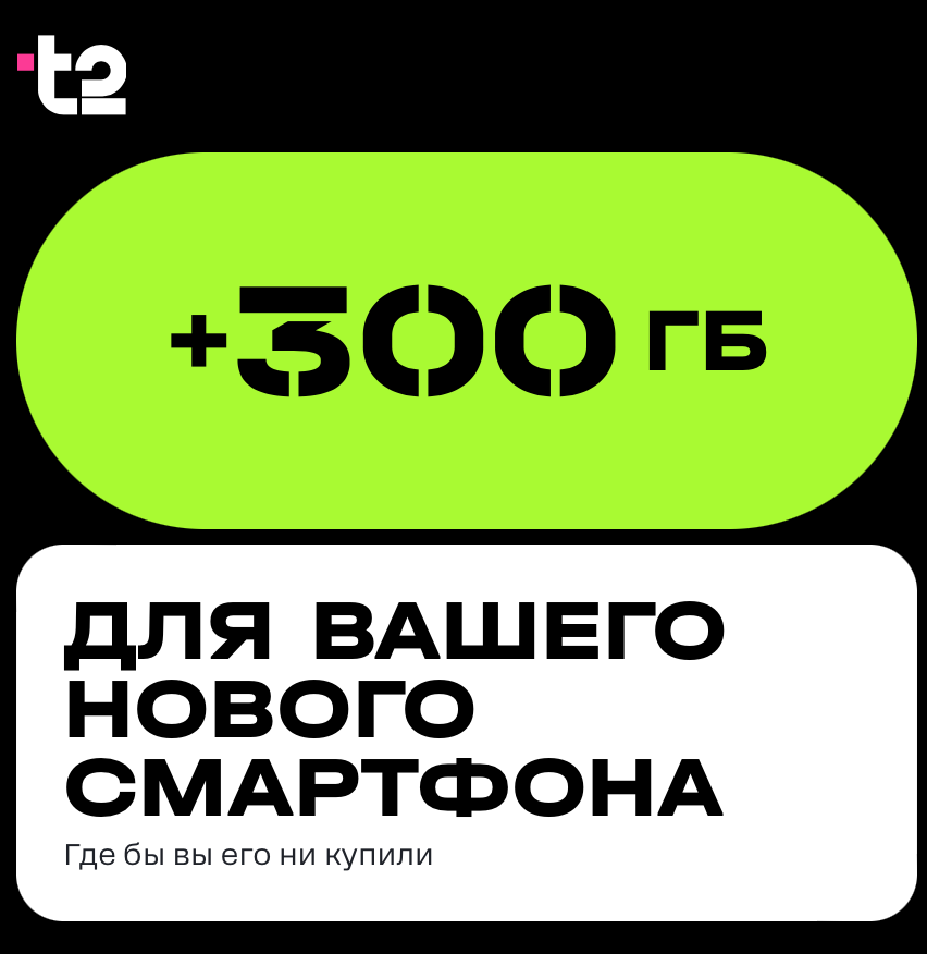 t2 подарит всем абонентам с новыми смартфонами 300 Гб. мобильного трафика