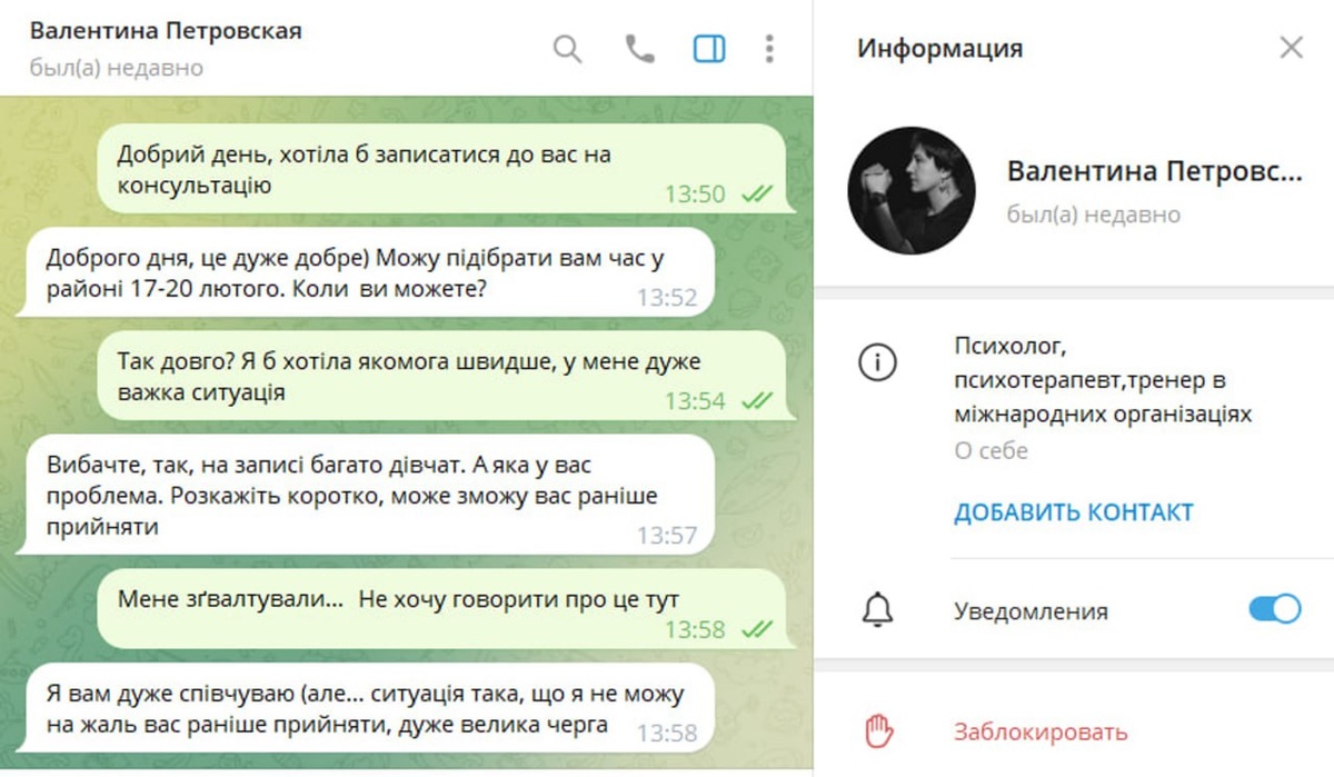 Они обратились к местным психологам и агентствам, специализирующимся на помощи жертвам насилия, представляясь пострадавшими.