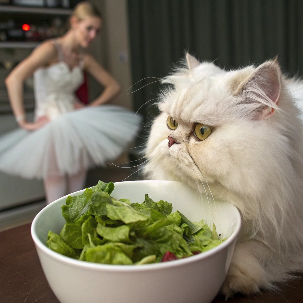 Мяу, дорогие поклонники! Это я, кот Волочковой — тот самый утончённый создатель атмосферы, который наблюдает, как моя хозяйка парит над кухонным полом, словно в балетном па. Сегодня я поделюсь с вами её фирменным рецептом салата, который она называет «Лебединое озеро на тарелке». Готовьтесь к гастрономическому спектаклю! Ингредиенты (или «то, что делает меня звездой кухни»): 1. Салатные листья — пучок. Лучше всего подойдут те, что напоминают пачку балерины — лёгкие и воздушные. 2. Перепелиные яйца — 3 штуки. Маленькие, но гордые, как я. 3. Оливковое масло — 2 столовые ложки. Для блеска, как её пуанты. 4. Лимонный сок — 1 чайная ложка. Для изюминки, как её шутки. 5. Соль и перец — по вкусу. Как моё настроение — иногда острое, иногда нейтральное. Сам рецепт (или «как превратить зелень в шедевр»): 1. Яйца. Поставьте кастрюлю с водой на огонь. Когда вода закипит, аккуратно опустите перепелиные яйца. Варите 4 минуты — ровно столько, сколько длится моё терпение, когда хоз