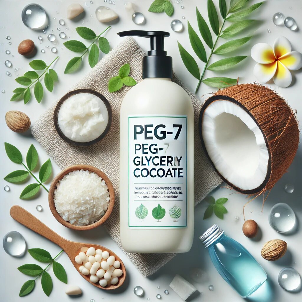 ПЭГ-7 глицерил кокоат — это производное кокосового масла, полученное путем соединения жирных кислот кокоса с глицерином и полиэтиленгликолем (ПЭГ). Он широко используется в косметике благодаря своим смягчающим, очищающим и увлажняющим свойствам.