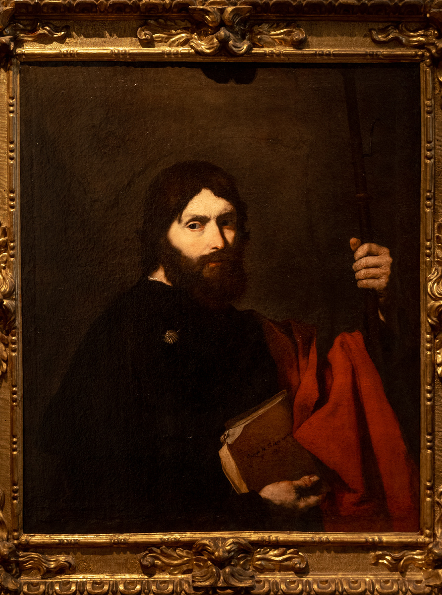Исследования последних лет показали, что картина «Святой Иаков Старший» принадлежит кисти Хусепе де Риберы — одного из самых блистательных испанских живописцев XVII века. Представленный на ней святой Иаков — один из 12 апостолов Христа, проповедовавший по преданию в Испании. Позже здесь были обретены его мощи, перенесенные впоследствии в собор города Сантьяго де Компостела. Святой, именуемый покровителем Испании, представлен с посохом путника и книгой, на которой отчетливо видна авторская подпись. На его плече – раковина морского гребешка, символ этого святого. Есть версия, что ими было покрыто его мертвое тело, найденное в прибитой к берегу ладье. Не исключено, что это изображение входило в так называемое apostolado — серию картин, изображавших Христа и его учеников, апостолов. Такие серии были распространены в творчестве испанских художников. В творчестве Риберы традиции испанской живописи органично соединились с влиянием идей и приемов гениального итальянца Караваджо. Рибера не толь