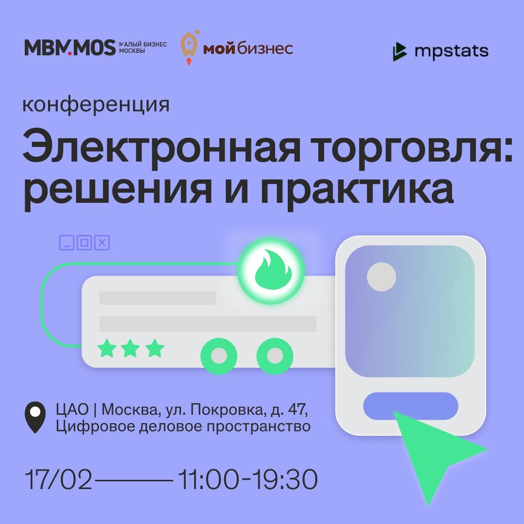 В этот понедельник очень крутое бесплатное мероприятие для селлеров. Я буду ведущим главной сцены! Всех жду, нужна ваша поддержка! Программа реально очень крутая и насыщенная, подробности по ссылке для регистрации. Будет много практики, пропускать такое — просто грех. 📆 Дата: 17 февраля 🕚 Время: 11:00—19:30 📌 Адрес: Москва, ул. Покровка, д. 47, Цифровое деловое пространство 📱 регистрация по ссылке (https://clck.ru/3GBLLT) PS Жду всех! Организаторы: ГБУ Малый бизнес Москвы и MPStats. Зажжем как следует!