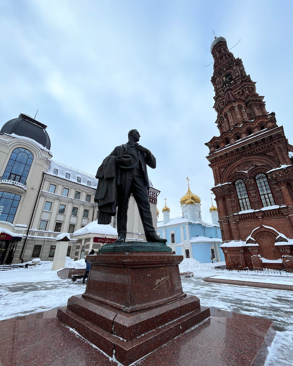 13 февраля 1873 года в Казани родился будущий известный во всём мире оперный певец Фёдор Иванович Шаляпин. Приглашаю прогуляться по местам Шаляпина и познакомиться с любопытными фактами из его биографии. 🗝️ Памятник Ф. Шаляпину на Баумана В 1999 году торжественно открыли памятник знаменитому земляку. Скульптор Андрей Балашов смог передать яркий образ оперного певца. Фигура «бронзового» Шаляпина очень динамична. Приложив левую руку к сердцу и небрежно набросив на правую руку плащ и шляпу, певец будто собирается уходить, но задержался на минуту, будто прощаясь. Место памятника выбрали не случайно. 🗝️ Богоявленский собор Один из старейших храмов Казани (отдельная статья про старинные храмы). Первые упоминания о храме относятся к 16 веку. А каменный храм был построен в 1731—1756 годах. Именно в Богоявленском соборе зимой 1873 года крестили Фёдора Шаляпина. Семья жила неподалёку, на Рыбнорядской улице. 🗝️ Флигель в доме купца Лисицына Рыбнорядской раньше называлась улица Пушкина. Каме