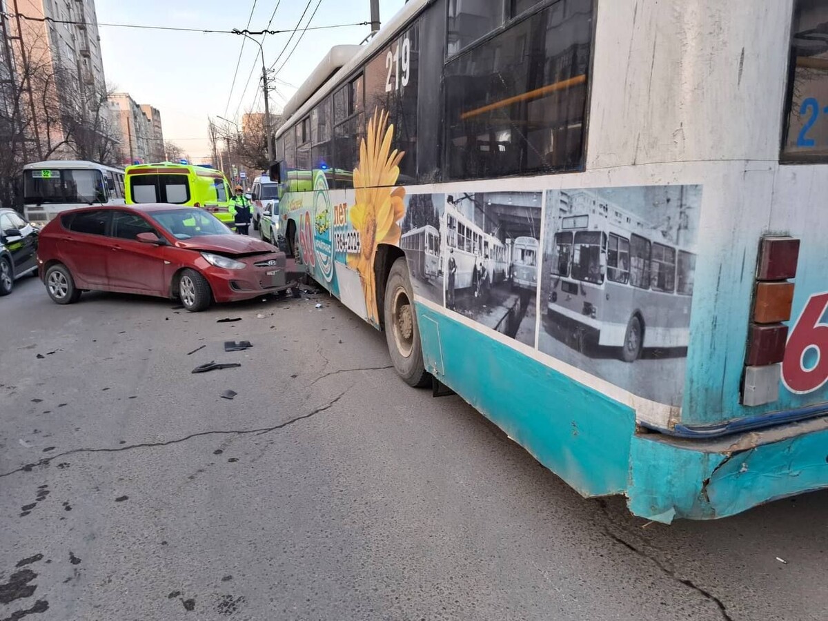 Троллейбус и «легковушка» столкнулись на улице Льва Толстого в Ставрополе