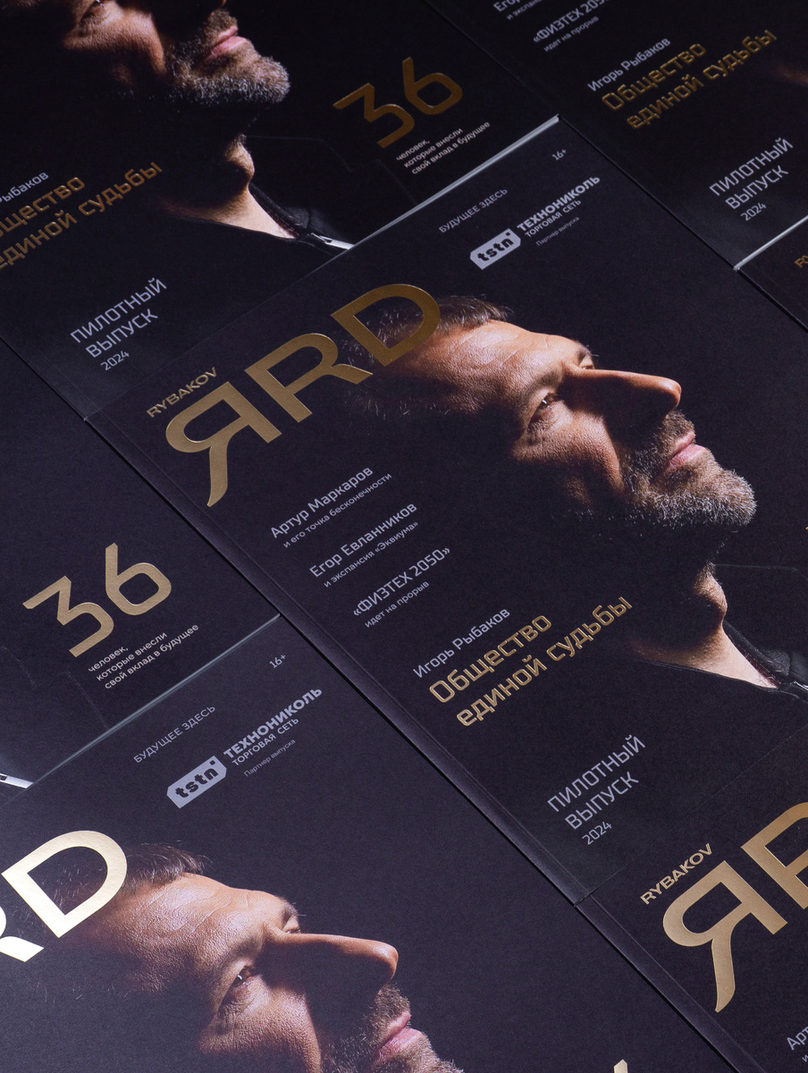 Журнал о людях, которые меняют мир. Кому-то Игорь Рыбаков известен как бизнес-блогер, кому-то как медийный миллиардер, а кому-то даже как певец. Мы знаем Игоря Рыбакова как известного промышленника, мецената и филантропа, основателя Фонда Рыбаковых и инициатора магистерской программы Кафедры Технологий будущего ШИР в одном из ведущих технических вузов России — МФТИ. Рыбаков Фонд занимается системными изменениями в образовании и объединяет миллионы участников — как статусных, так и молодых предпринимателей со всего мира. Для экосистемы Игоря Рыбакова мы разработали стиль премиального бумажного журнала ЯRD и сверстали пилотный выпуск. Идея состояла в том, чтобы не просто напечатать очередной Forbes, а создать новую платформу для коммуникации людей, готовых мыслить масштабно, и реализовывать грандиозные замыслы. Перед стартом мы изучили существующие на рынке издания и пришли к выводу: правила дизайна бумажных журналов безнадёжно устарели, дискредитировав само слово «Глянец». Поэтому мы со