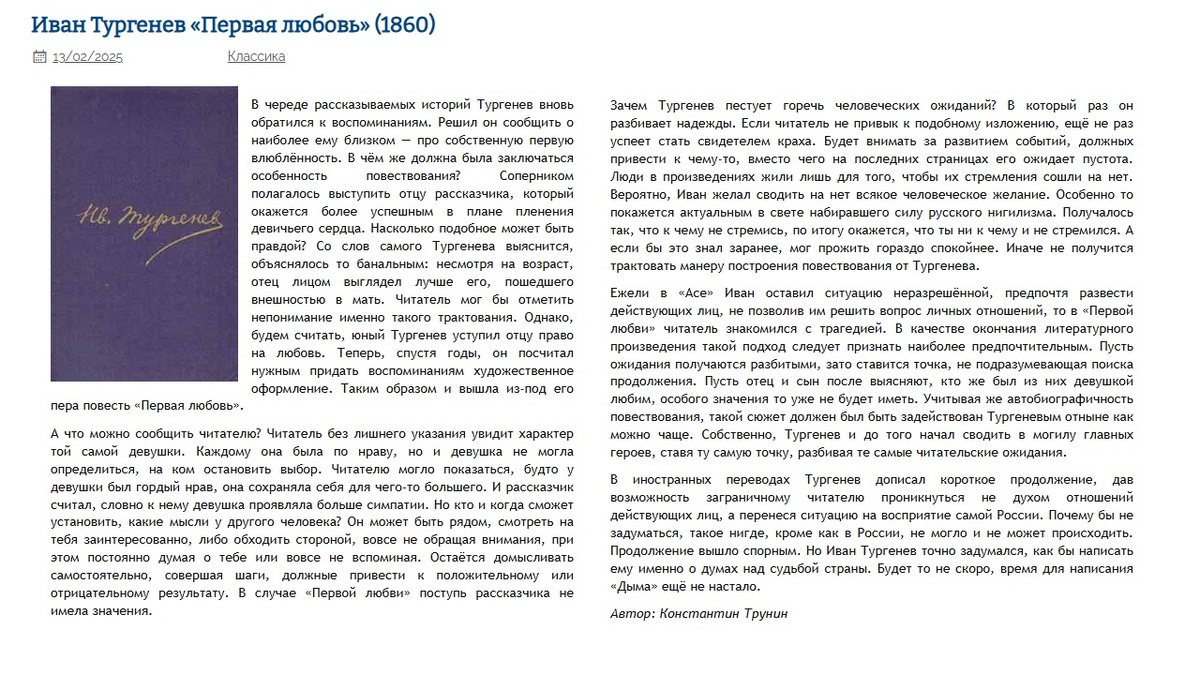 Иван Тургенев "Первая любовь" (1860) | Критика