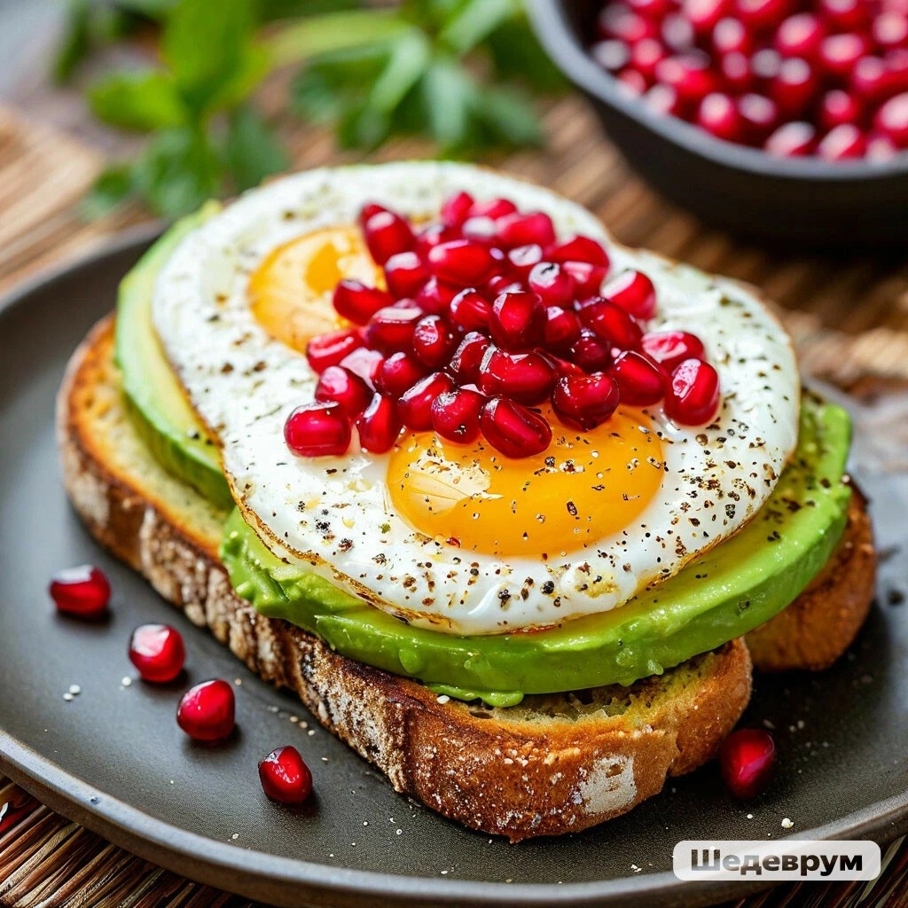 Авокадо-тост с яйцом и гранатом