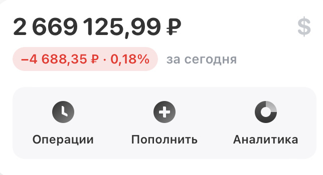 Сегодня продавал некоторые очень сильно выросшие за вчерашний вечер позиции. Наш рынок рванул просто , и сегодня уже некоторые начали фиксировать, что привело к небольшой коррекции от вчерашних вечерних пиков. (брокер в этом приложении почему-то показывает не с закрытия дневной сессии, как индекс показывает, а с закрытия вечерней сессии, то есть относительно 23:00 предыдущего дня) Конечно, всем понятно, что такими темпами наш рынок расти не будет, и необходимо частями заходить/выходить из позиций. Но также понятно, что колбасить его будет в обе стороны. На данный момент в фонде денежного рынка у меня 33% Кэш 5% В акциях 62% Не является индивидуальной инвестиционной рекомендацией. Если у вас возникли какие то вопросы по компаниям, экономике, моей стратегии инвестирования, задавайте их в комментариях к посту, буду рад на них ответить. Обзор моего портфеля и обзоры по компаниям вы можете читать в моем телеграм-канале.