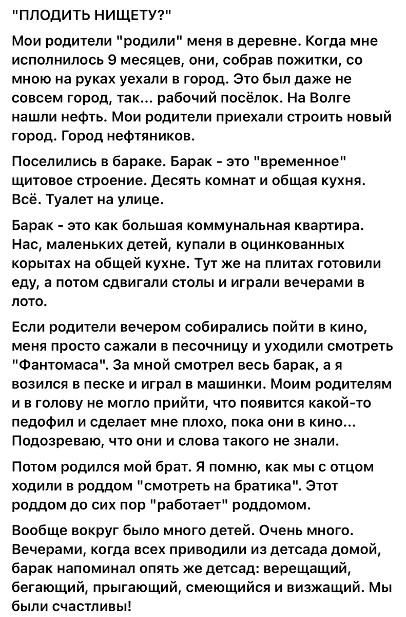 Один деятель решил сравнить жизнь в СССР и сейчас, и что нормально жили, а сейчас всем вот подавай чего-то лучшего, рожать не хотят.