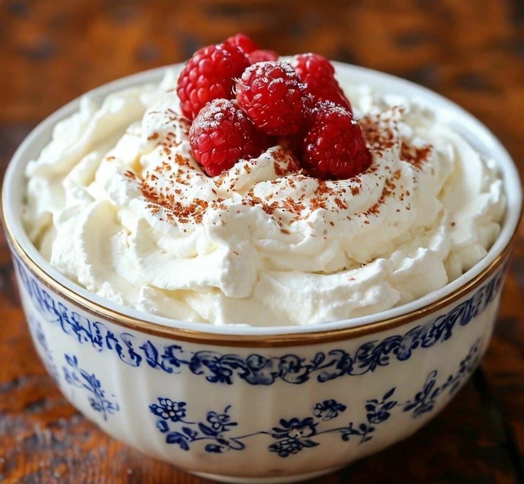 Первый вариант: 80г жирного творога, желток, 25г сахара, 30г сливок 35%, 5г колотых лещиновых орехов, 2г желатина, ванилин или лимонная корка. Творог протереть сквозь сито или пропустить через мясорубку. Желток взбить с сахаром и пряностями, затем добавить распушенный желатин, творог, размешать, везти взбитые сливки и измельчённые жареные орехи. Выложить в посуду и остудить. Подавать в широких винных бокалах с фруктами или ягодным сиропом. Второй вариант: 50г творога, желток, 20г сахара, 35г 35% сливок, 35г земляничного варенья или желе из красной смородины, 5г колотых лещиновых орехов, 4г желатина. Творог протереть сквозь сито или пропустить через мясорубку, добавить взбитый с сахаром желток. варенье, распушенный желатин и взбить. В массу ввести взбитые сливки и осторожно смешать, выложить в посуду и дать загустеть. Подавать в посуде для сладкого, посыпав измельчёнными жарен