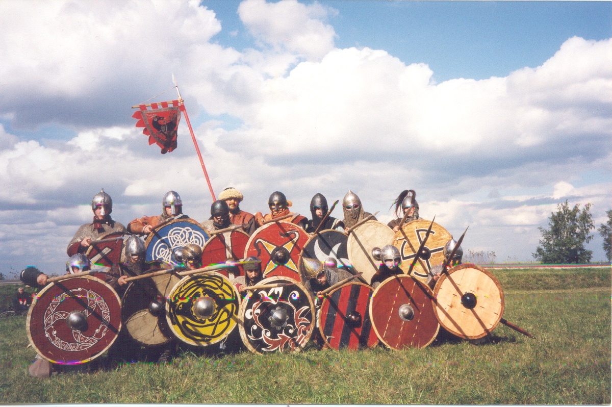 В 2000м году мы второй раз ехали на Куликово Поле. Точнее, некоторые из нас были там ещё в 1998м, но их было мало. Для остальных это был первый или второй выезд в жизни на фестиваль исторической реконструкции. Транспортом нам служил видавший виды КаВЗик, это такой автобус на базе Газона с носом от этого самого Газона. Он был приметный. Его в качестве гуманитарной помощи начинающим реконструкторам дал 8й интернат. На окнах были плотные занавески, а вокруг лобового стекла висели рюшечки и монетки под резинкой. В общем, классика. Ехали мы по трассе М4, проехали Ефремов и свернули на повороте с надписью «Павлов хутор». Далее наш путь лежал на Куркино и к деревне Татинки, где всегда стоит лагерь фестиваля. В Куркино есть перекрёсток, где в преддверии фестиваля всегда дежурит ГАИ. Подъезжаем к перекрёстку, нас тормозят. Водила нам попался весёлый и склонный к авантюрам. На вопрос гаишника — «Кого везём?», он ответил — «Сирот!». Гаишник — Ну пусть сиротки выйдут. Водила — Парни, выходите! Ко
