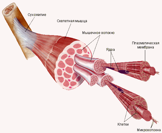 Работа мышц Мышечное волокно возбуждается нервными импульсами, поступающими от мотонейронов. Передача возбуждения происходит в нервно-мышечном синапсе. Сокращение мышцы складывается из суммы сокращений отдельных мышечных волокон. Утомление мышц ― временное понижение работоспособности органа. Утомление мышц связано с накоплением в них молочной кислоты. Кроме того, при утомлении расходуются запасы гликогена, а следовательно, снижается интенсивность синтеза АТФ. Работоспособность мышц повышается при тренировках. Мышечная система человека Согласованная работа мышц сгибателей и разгибателей.