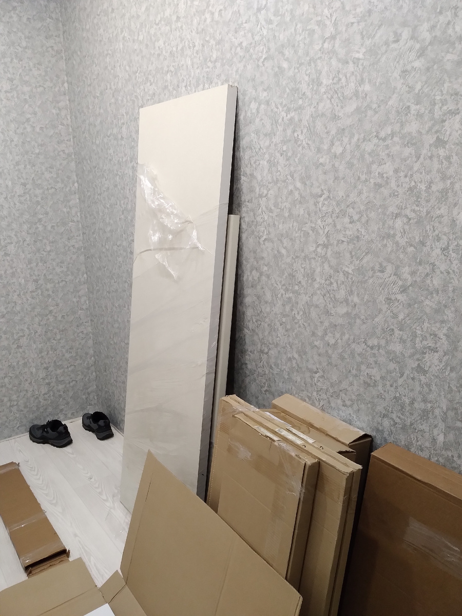 Мебель привезли, подняли в квартиру. Несколько коробок заняли немного места в прихожей. Меня удивило, что модули были в не собранном виде. Когда несколько лет назад покупали кухню в свою квартиру, модули шкафчиков были в собранном виде, тогда коробки заняли всю комнату. Потом вспомнила, что та кухня была под заказ. Дорого тогда вышло. В этот раз мы искали самый бюджетный вариант, чтобы самый самый, в то же время современный и красивый.