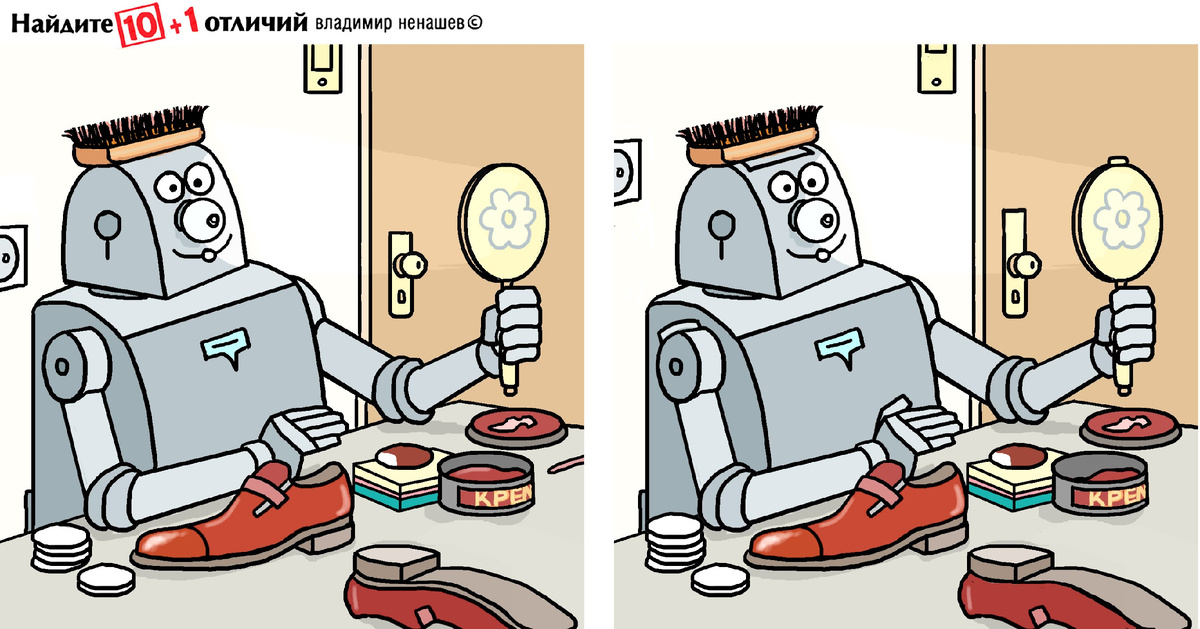 10+1 отличий. Очень теплый и приятный сюжет. Друзья, всем хорошего настроения! Вот симпатичный робот и он работает. Найдёте отличия? Ответ Ура жизни!