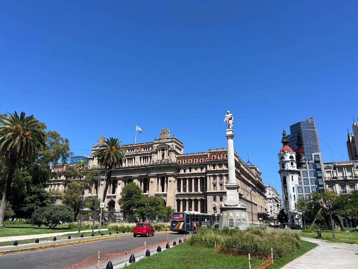 Сбоку от дворца стоит тот самый Хуан де Гарай, основавший Буэнос-Айрес, а перед особняком стоит памятник генералу Бельграно, превратившийся в мемориал жертвам ковида. Аргентинцы несли сюда камни и камешки в честь каждого умершего во время пандемии. Скорбное зрелище.