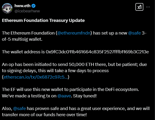 Однако в январе 2025 года эта ситуация изменилась. EF объявил о выделении 50,000 ETH (примерно 150 миллионов долларов) на экосистему DeFi и поместил средства в специализированный мультиподписный кошелек «EF: DeFi Multisig». Это действие ознаменовало стратегическую корректировку фонда от «пассивной распродажи» к «активному участию в DeFi для получения дохода». Для сообщества это, безусловно, является огромным сигналом: EF наконец-то сделал первый шаг к поддержке экосистемы DeFi Ethereum, пытаясь зарабатывать доходы на блокчейне для восполнения дефицита средств, снизить рыночное давление и восстановить доверие к себе.