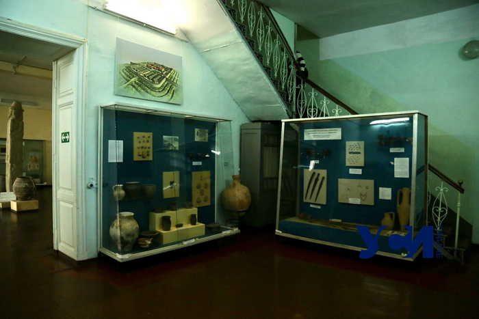 Да, да. Вот так точно я всё запомнил. И ещё с вершины этой лестницы я вижу что под стеклом лежит... Настоящий человеческий скелет! Каждая косточка какого-то древнего жителя причерноморья заботливо была собрана и разложена на песчаном основании. В результате чего и вышел такой экспонат музея. Ещё сверху, ещё не спустившись окончательно на пол нижнего уровня музея я издал такой восторженный вопль, что родители, привыкшие что я обычно не издаю ни звука, пока меня не попросят, пришли в ужас и не знали как бы меня утихомирить.Тсссс!" - только и услышал я сразу и от мамы и от папы и от сестры одновременно. Оно и понятно, потому что тишина должна быть в библиотеке музее. Конечно же юного вивисектора внутри меня никак невозможно было оторвать от этой стеклянной витрины. Я очень долго и с любопытством разглядывал каждую косточку. А потом ещё долгое время делился полученным впечатлением с каждым встречным. В ближайшие 3 дня об удивительном экспонате узнал наверное не только каждый член экипажа сухогруза "Н.Гоголь" (мы те дни провели на борту этого судна. Это отдельная история), но думаю и каждый биндюжник в Одесском порту.