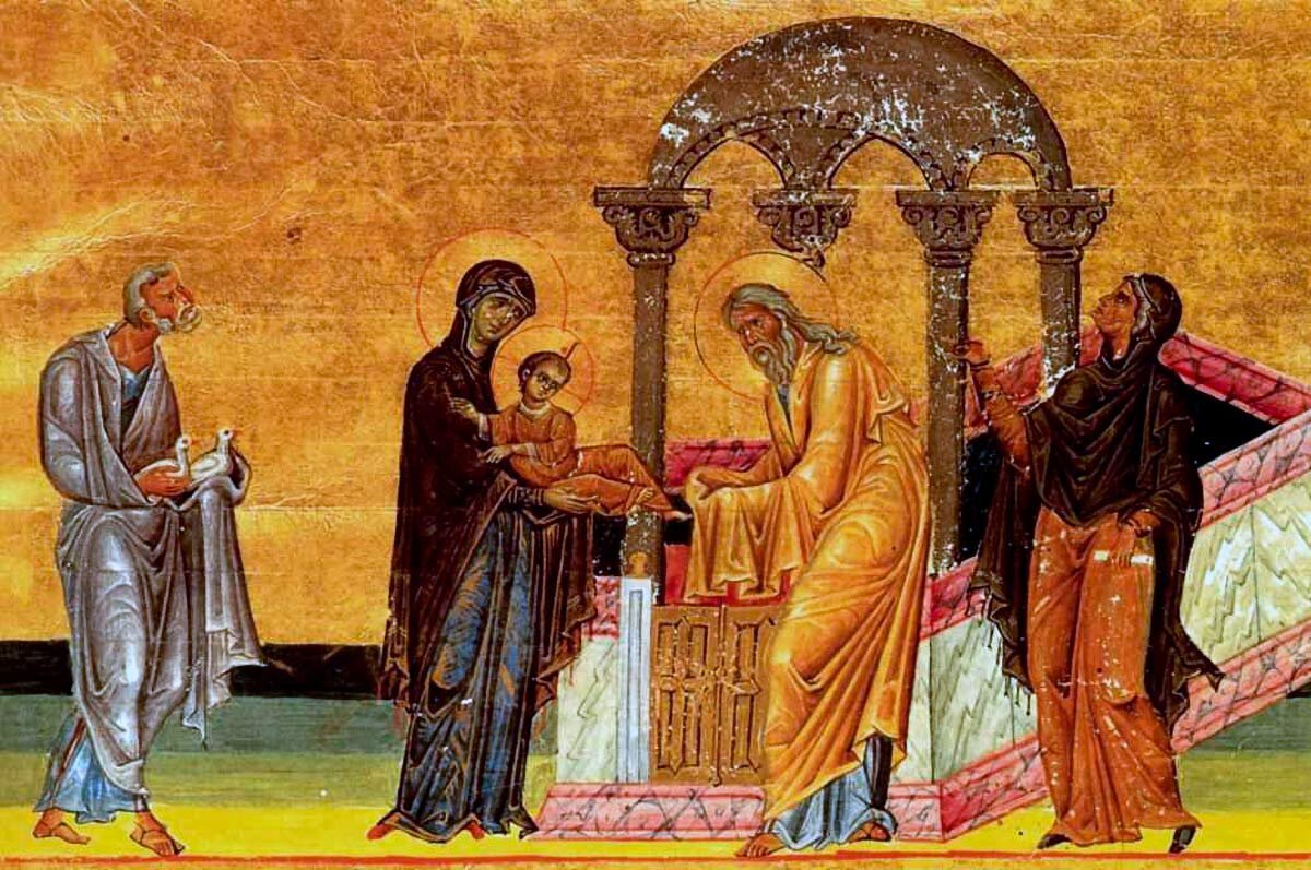 По иудейскому обычаю, когда Младенцу Иисусу исполнилось 40 дней, Иосиф и Мария понесли Его в храм.