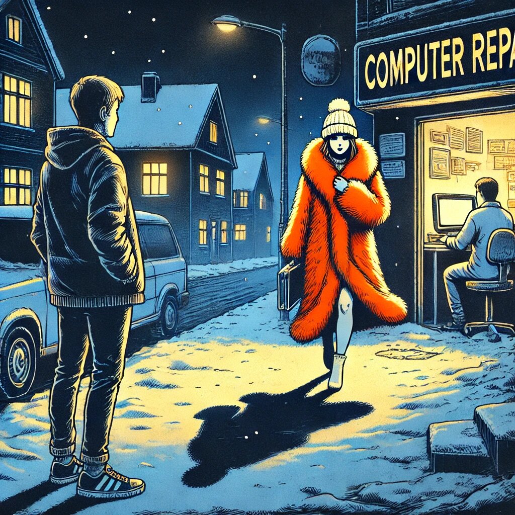 Он оставил в покое сгоревший монитор, который недавно приволок ему какой-то студентик, оделся, повернул выключатель. И в это время мимо окна в свете фонарей проплыла девушка в рыжей шубке и белой вязаной шапочке. Именно проплыла – настолько ровной и плавной была ее походка, что казалось, она едет на коньках по гладкому льду. Дима быстренько закрыл крохотное помещение, гордо именующееся «Центром по ремонту компьютеров», и пошел за девушкой.