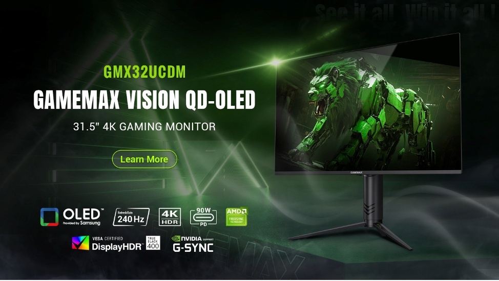 Компания GAMEMAX представила свой первый игровой монитор VISION GMX32UCDM, оснащенный 4K QD-OLED панелью и имеющий частоту обновления 240 Гц. Целью компании является конкуренция с ведущими брендами в игровой индустрии, такими как ASUS и MSI. Дисплей монитора имеет 31,5-дюймовый размер и использует панель QD-OLED для достижения яркого и четкого изображения. Эта технология позволяет монитору обеспечить высокий уровень контрастности и детализации. GMX32UCDM оснащен панелью третьего поколения QD-OLED от Samsung, что делает его способным работать с частотой обновления до 240 Гц. Совместно с временем отклика всего 0,03 мс, монитор идеально подходит для соревновательных игр и снижает эффект призрачности. Он также поддерживает HDR, Flicker-Free tedhnology и AMD FreeSync Premium Pro для более комфортного игрового опыта. Монитор также обладает современными технологиями, включая высокую точность цветопередачи, 99% цветовую гамму DCI-P3 и режим снижения уровня синего света.