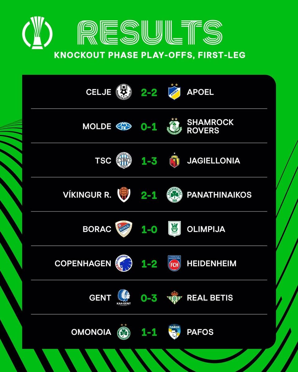 Результаты первых стыковых матчей плей-офф Лиги конференций