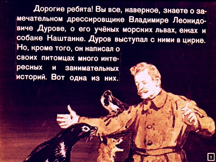 Цирковой дрессировщик Владимир Леонидович Дуров помимо работы с животными на манеже ещё и много интересных историй написал. Рассказ «Слон Бэби» – одна из таких историй. Диафильма у меня не было, раньше его не видел.