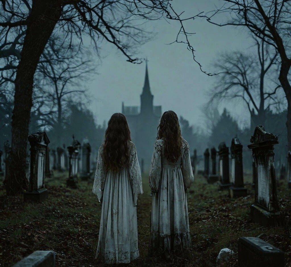 Димка с Пашкой прикалывались надо мной и без конца курили. При этом они все время оборачивались, будто кого-то ждали. Вдруг среди могил показались два силуэта. В нашу сторону шли две девушки. Одеты они были в платья, которые каким-то странным образом светились в темноте. Сейчас каких только тканей нет, я за новшествами не слежу. Но выглядели дамочки одновременно и пугающе, и эффектно. Одна блондинка с длинными волосами, вторая кудрявая брюнетка.