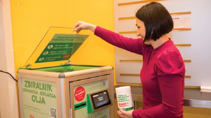 В Словении розничная сеть SPAR Slovenia открыла в шести магазинах автоматизированные пункты приема, в которых покупатели могут сдать отработанное растительное масло. Клиенты могут принести использованное кулинарное масло из дома в магазин. Автоматы принимают масло из фритюрниц, духовок и различных продуктов питания. Пользователь должен запить масло в автомат, следуя инструкциям, указанным на электронном дисплее устройства самообслуживания. После завершения процесса клиенты получают купоны на скидку в магазине, в котором они сдали масло. Собранное кулинарное масло будет использовано для производства биодизельного топлива. «В SPAR Slovenia мы продвигаем циклическую экономику и ответственное управление отходами. Поэтому мы сделали так, чтобы для клиентов было безопасно и легко утилизировать отработанное кулинарное масло в мусоросборниках в шести фирменных магазинах SPAR. В этом году мы планируем установить их в большем количестве магазинов, чтобы стимулировать клиентов правил