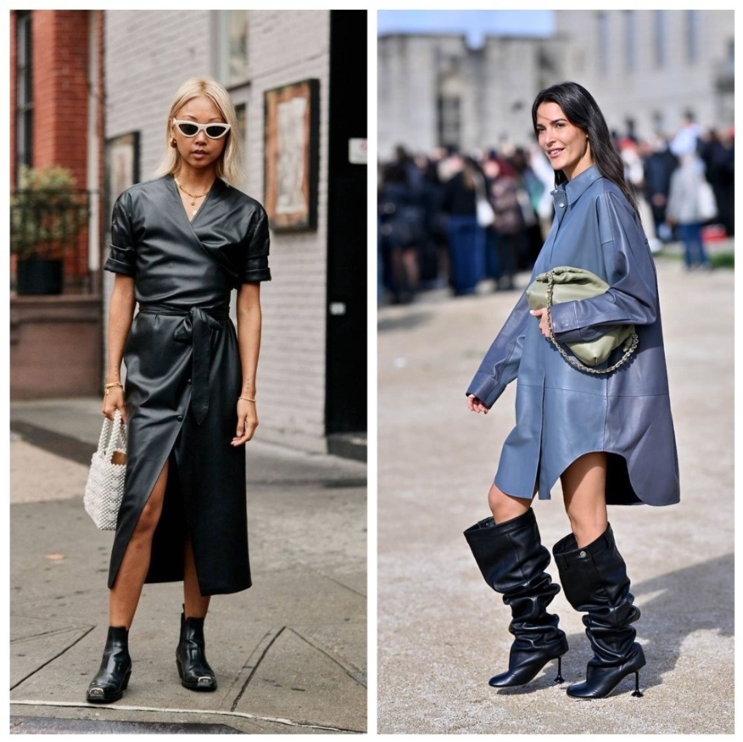 И всё-таки я стараюсь держать нос по ветру, так сказать, и периодически почитываю всякие обзоры от модных блогеров. Ну что могу сказать… Воспринимать все эти рекомендации всерьёз ни в коем случае не рекомендуется, тем более, что многие из них противоречат друг другу до смешного. В один и тот же день вам дадут настоятельные советы белое не носить, в обтягивающем не ходить и не танцевать, а в соседнем блоге вы прочтёте, что должны немедленно освежить свой гардероб белыми вещами, выкинуть оверсайз, вернуться к любимому облипону и сегодня же вечером пойти записаться на бачату)). Не смотря ни на что, мне нравится читать модные обзоры и рекомендации. И вот почему: я выбираю из них те, что мне подходят, причём не просто подходят, а что уже есть в моём гардеробе и что совпадает с моими планами. А на всё остальное спокойно закрываю глаза (Эту моду мы пропустим (С) ). Например, вот на такую: одежда из эко-кожи: