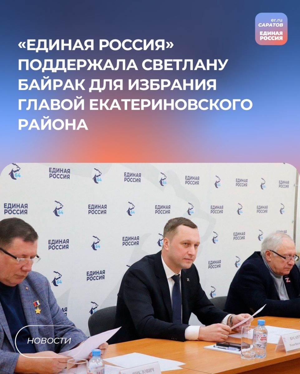 ✅ Такое решение было принято на заседание президиума регионального политсовета партии «Единая Россия», которое состоялось 13 февраля. Президиум провел губернатор, секретарь реготделения партии Роман Бусаргин. Члены президиума поддержали кандидатуру Светланы Байрак для избрания главой Екатериновского муниципального района. 💬«Мы недавно посещали район и обсуждали с вами основные направления развития. Сложностей там накопилось много, большой блок задач по здравоохранению, социальной сфере и другим блокам. Необходимо их планомерно решать, в том числе за счет всех доступных механизмов поддержки. Региональная власть будет поддерживать вас по всем этим направлениям. Часть решений мы уже приняли. Они касаются дополнительного финансирования по созданию спортивного ядра в школе и увеличению дорожного фонда муниципалитета», - отметил Роман Бусаргин, обращаясь к Светлане Байрак. Руководитель фракции партии «Единая Россия» в Саратовской областной Думе, член президиума Ирина Колесникова отмети