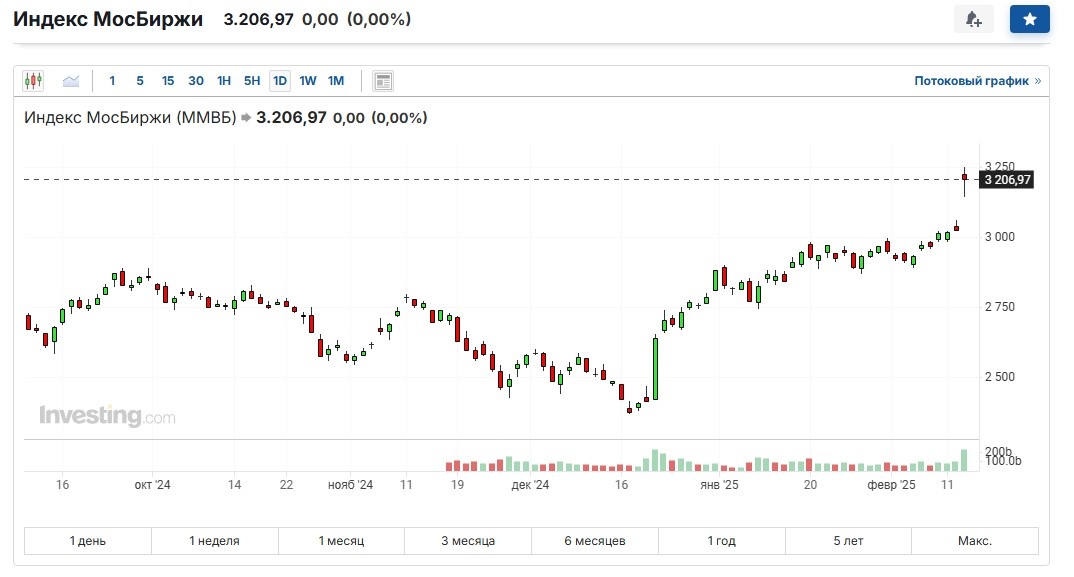 Но это не просто случайный день. Далее тренд на рост рынка продолжился. И со своего дна, наблюдавшегося до 20 декабря 2024 года, к настоящему моменту он вырос уже на 33% с 2400 до 3200 по индексу Мосбиржи, если грубо.
