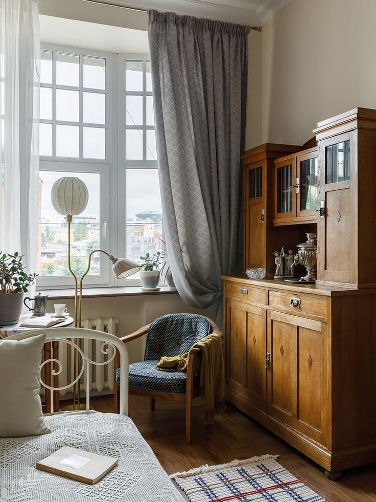 Добро пожаловать в уютный уголок, который принадлежит одной творческой даме. Она всегда была уверена, что дом — это место, где каждая вещь должна хранить свою историю. Сегодня она рада пригласить вас в свою маленькую квартиру, где 90% мебели — винтаж. Здесь каждый уголок пропитан атмосферой прошлого, и хозяйка с удовольствием поделится тем, как создала этот уникальный мир. Как только вы переступаете порог, то замечаете старинный столик, который когда-то принадлежал бабушке хозяйки квартиры. Он не только хранит ключи и почту, но и наполняет пространство теплом и воспоминаниями. На поверхности стола расположена винтажная настольная лампа, а над ним висит картина с натюрмортом, придающая пространству музейного вида. Внимание привлекает и напольное зеркало в массивной деревянной раме, которое добавляет глубины и элегантности коридору. Хозяйка говорит, что это не просто мебель, а настоящие хранители семейных традиций. Вот похожие товары в ретро стиле: Перемещаясь в гостиную, вы увидите н