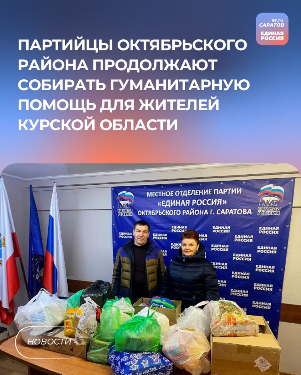 📦Партийцы Октябрьского района продолжают собирать гуманитарную помощь для жителей Курской области