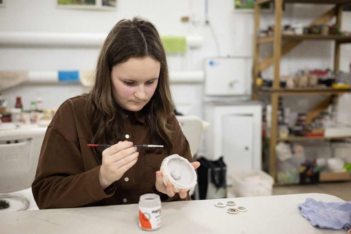 Учащиеся студии «Мастрота» Школы креативных индустрий под руководством педагогов Дарьи Щербаковой и Ольги Изотовой представили промежуточные результаты своих проектов. В этом году керамическая мастерская начала свою работу, и студийцы уже готовы продемонстрировать свои первые творения, прошедшие обжиг. Группы А8 и Б8 занимаются созданием разнообразных керамических изделий, включая оригинальные украшения (кулоны и подвески), сувениры в виде резных наличников, характерных для Тульской области, а также декоративную посуду. Кроме того, студийцы сшили фартуки для работы в керамической мастерской, разработали уникальный дизайн вышивки для них и успешно выполнили вышивку на специальной машине.