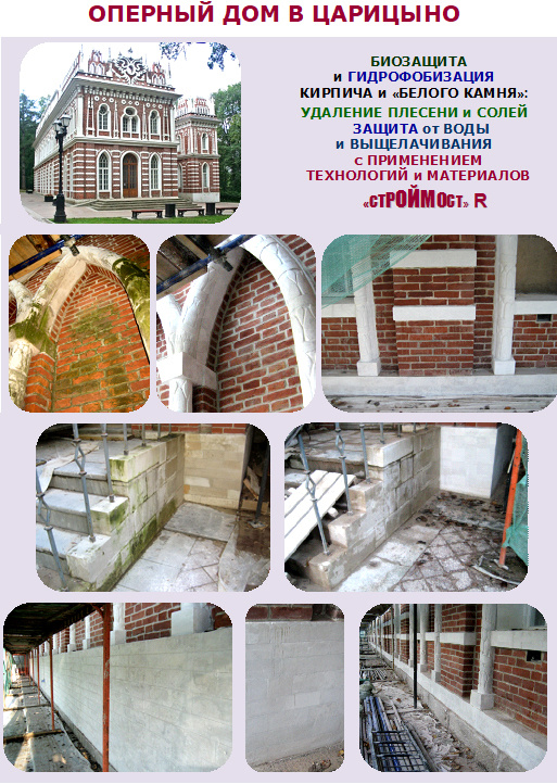 Биозащита и гидрофобизация кирпича и "Белого камня": удаление плесени и солей, защита от воды и выщелачивания с применением технологий и материалов «СТРОЙМОСТ» R